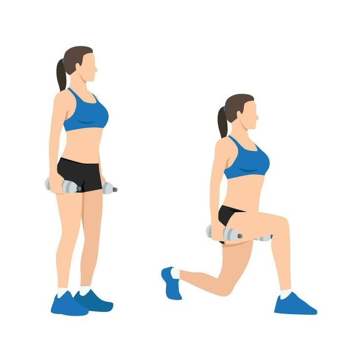 • Como fazer: Dê um passo à frente e agache até formar dois ângulos de 90°. Volte e repita com a outra perna.